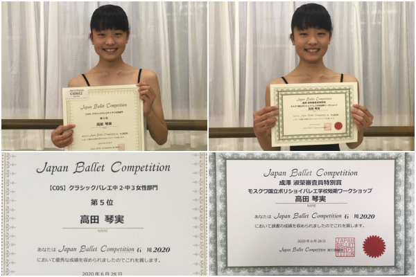 - 2021年6月Japan Ballet Competition において、下記の成績をおさめました。