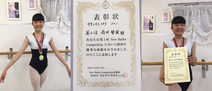 - 2021年3月New Ballet Competitionにおいて、下記の成績をおさめました。
